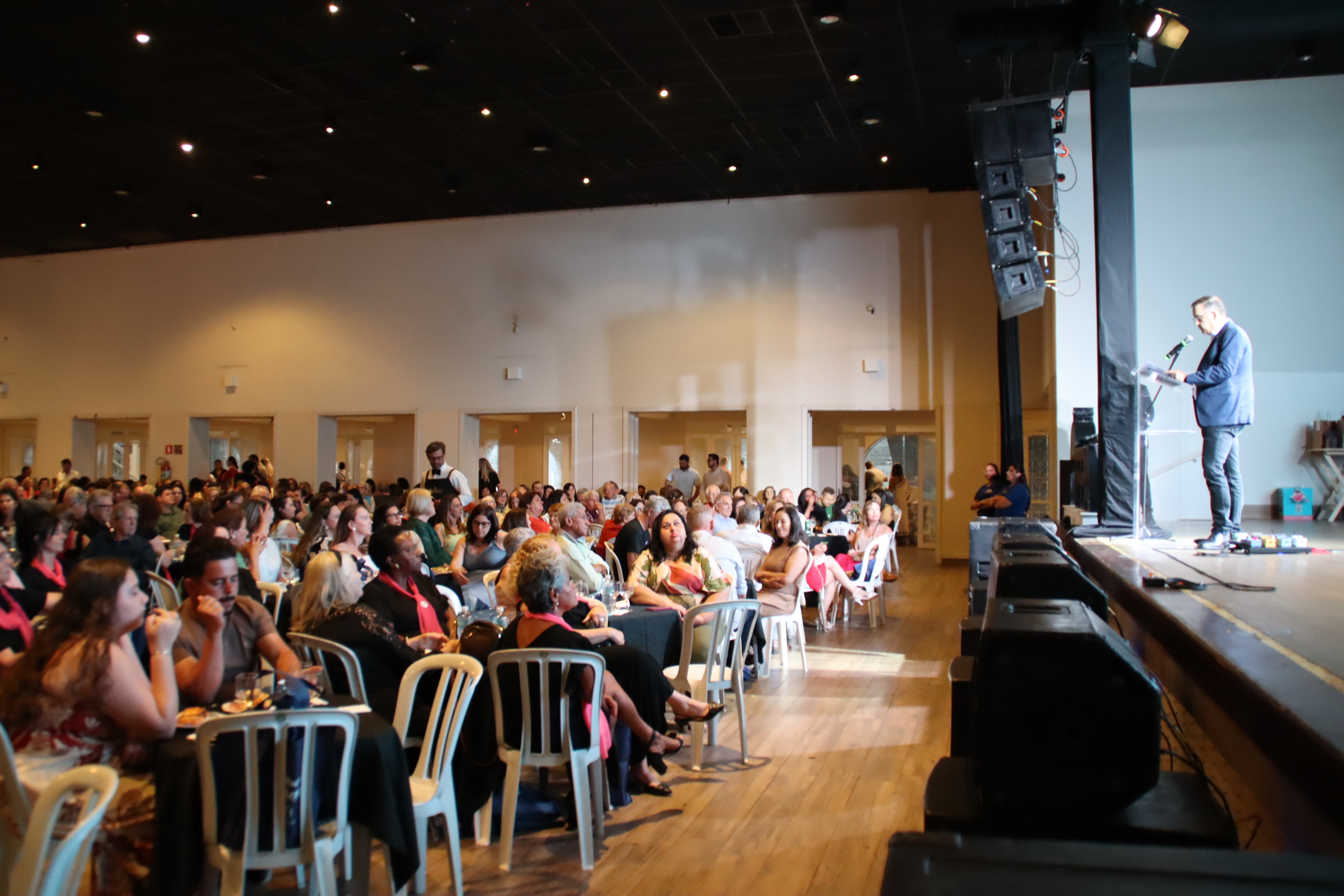 Durante a cerimônia, Julio Cesar Luiz, gerente de Captação de Recursos, emocionou o público ao traduzir a rotina e a essência do voluntariado. “Bom dia, boa tarde e boa noite… é assim que eu encontro vocês, porque voluntário não tem hora para ajudar. Estamos sempre nos falando, planejando, acolhendo, organizando e fazendo acontecer. Quem está aqui sabe que um evento não nasce no dia: ele começa meses antes, nos encontros, nas ideias, nas mãos que montam, carregam, decoram, divulgam e recebem cada pessoa com carinho e só termina muito tempo depois, quando desmontamos, avaliamos e já pensamos no próximo. O trabalho de vocês é presença, é acolhimento, é escuta, é cuidado. É estar no bazar, na rifa, no show de prêmios, no café, no leilão, na festa, no abraço e na palavra certa na hora certa. E é graças a cada gesto voluntário que conseguimos transformar esforço em resultado: R$ 3,6 milhões revertidos em melhorias reais para o atendimento dos nossos pacientes do SUS. O impacto é grande, mas a grandeza maior ainda é a de vocês”.