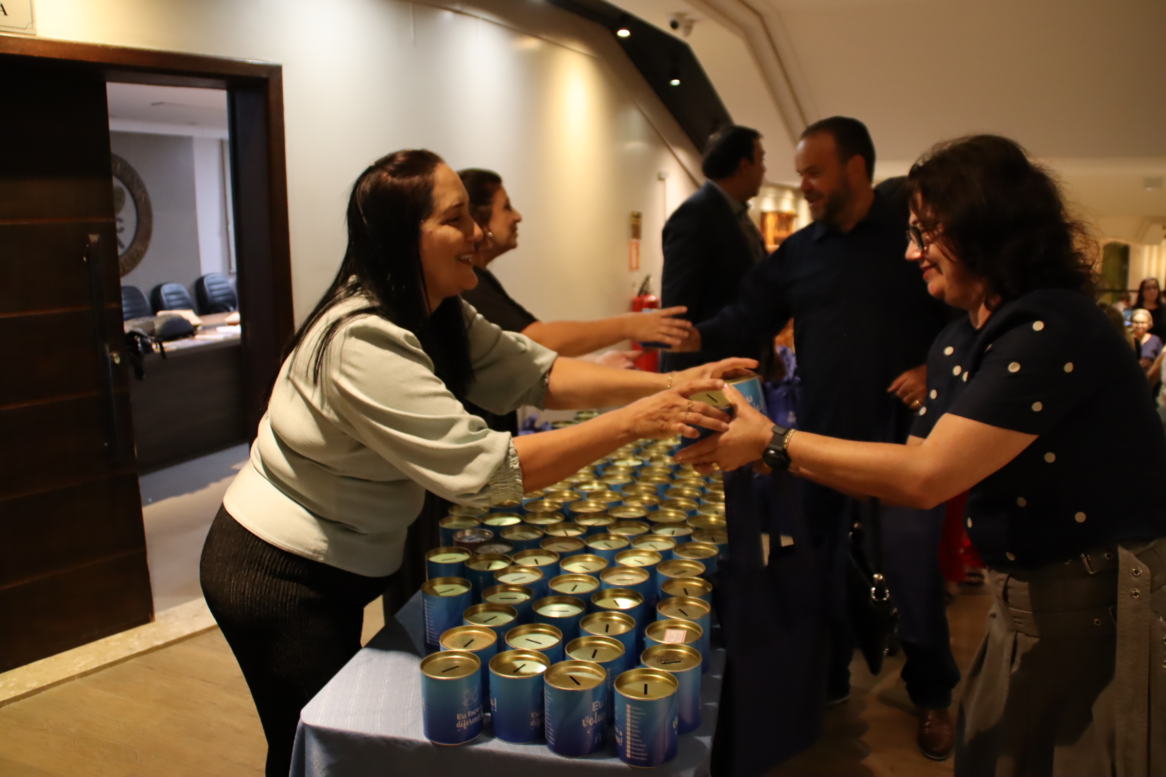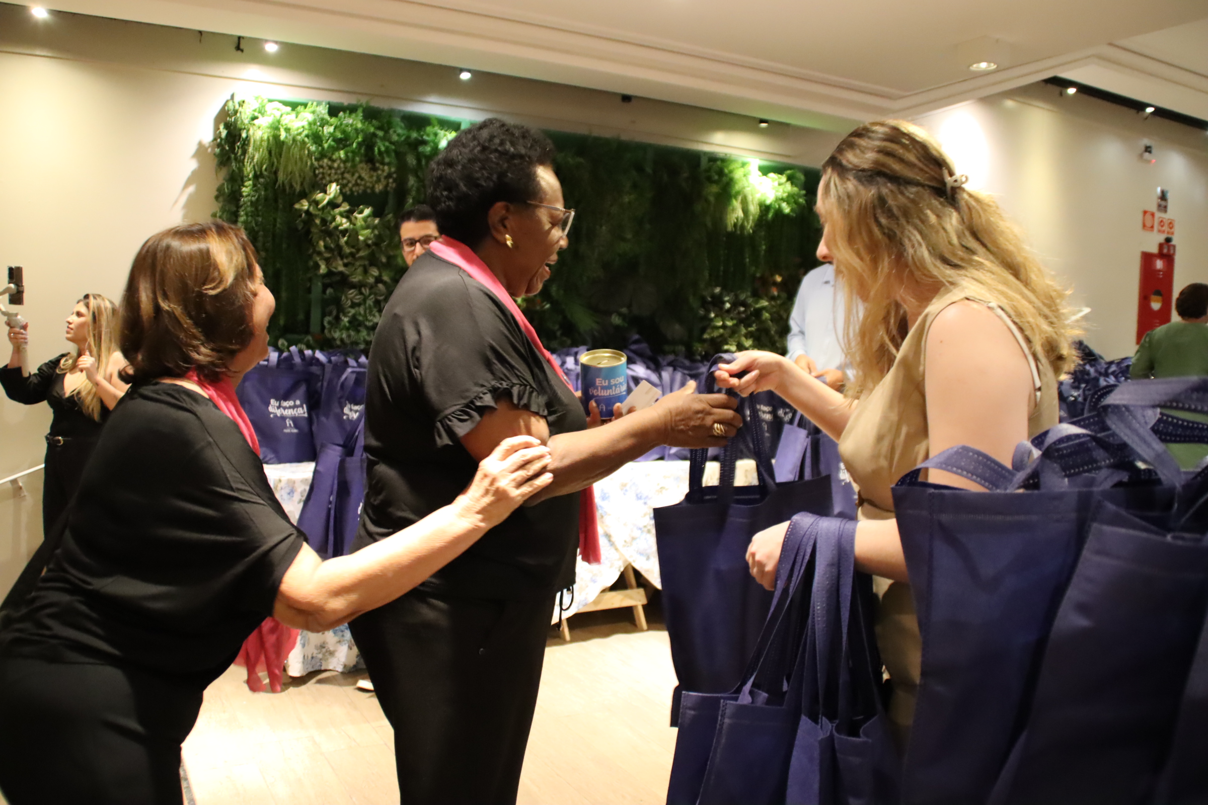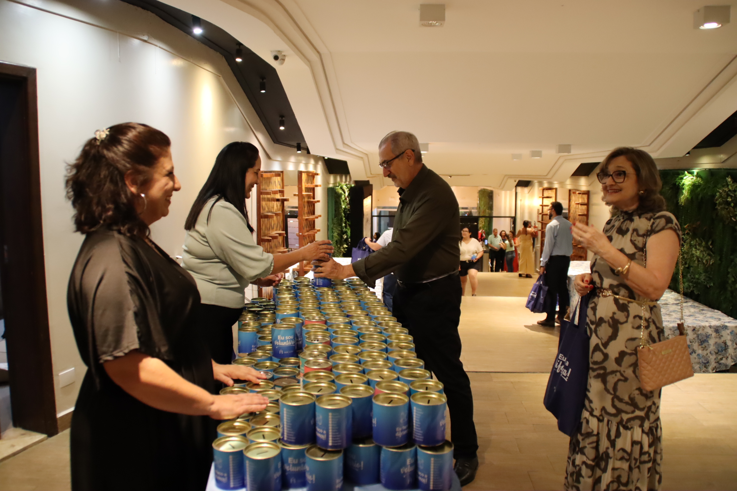 A programação ainda incluiu jantar, cerimônia oficial de agradecimento e exibição de vídeos dos movimentos do Projeto Design do Futuro e um que emocionou o público ao contar a história de Edilene Perpétua de Oliveira, que trocou o crachá de voluntária pela pulseira de paciente. Presente ao evento, Edilene recebeu uma calorosa salva de palmas pela sua força e determinação no enfrentamento do câncer. A noite também reservou momentos de descontração, com sorteio de brindes doados por parceiros da Fundação. Outro momento especial da noite foi a entrega dos cofrinhos distribuídos aos voluntários no evento de 2024. Durante todo o ano, cada grupo se dedicou a preenchê-los com amor e propósito, e nesta edição eles retornaram repletos de solidariedade.