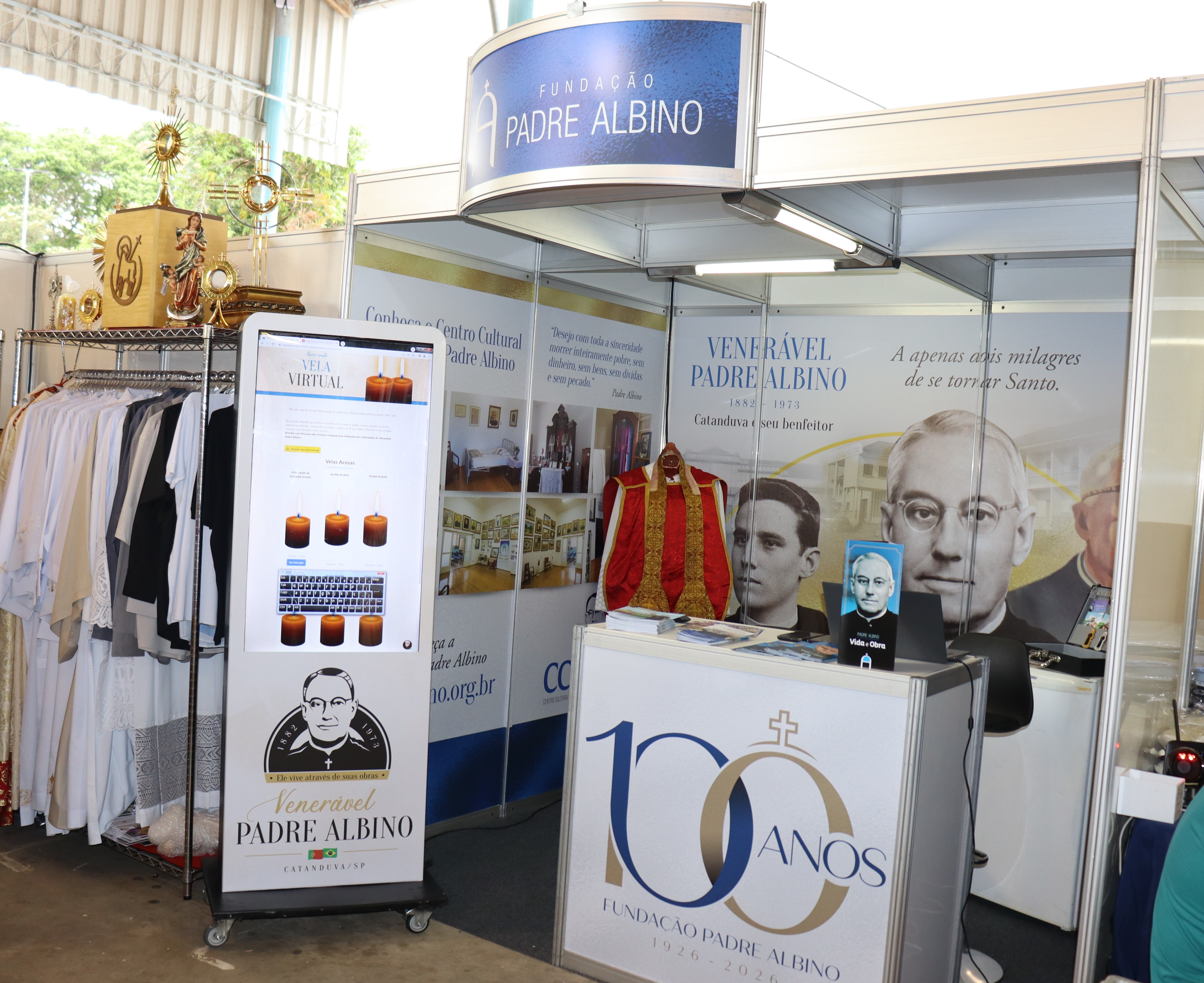 No estande no evento está instalado totem interativo com o site dedicado ao Venerável: padrealbino.org.br